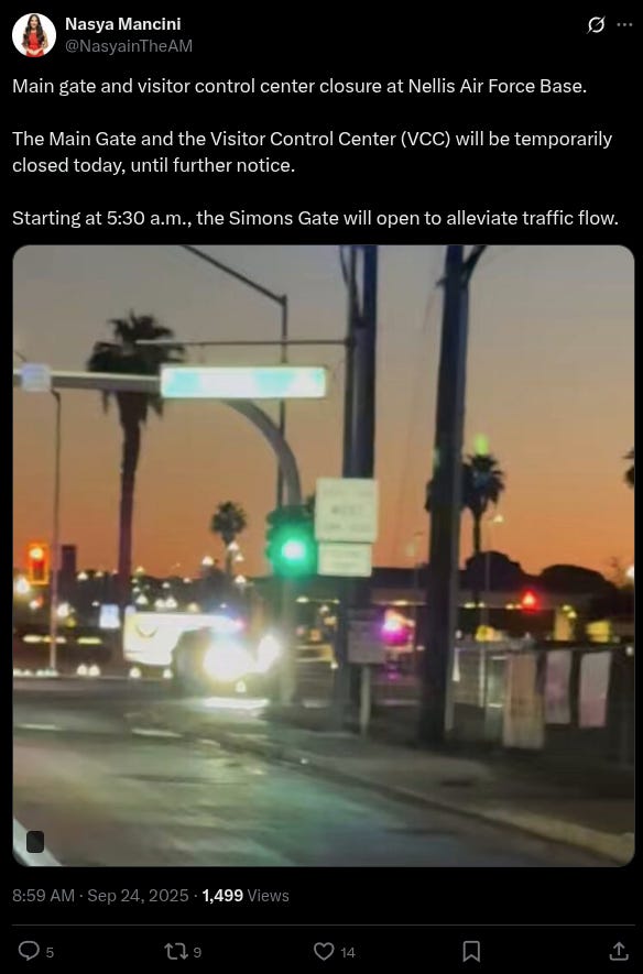 In a Facebook post, Nellis Air Force Base announced that it has since opened its main gate again this morning.
