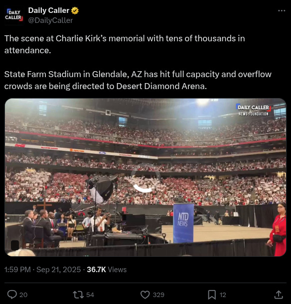 TPUSA, Kirk’s conservative advocacy group, received 32,000 inquiries related to starting new college campus chapters within two days of his death, according to spokesperson Andrew Kolvet. Trump, Vice President J.D. Vance and other leading conservative figures also spoke at a Sunday memorial service for Kirk in Arizona, which had around 90,000 attendees and required a second stadium for overflow.