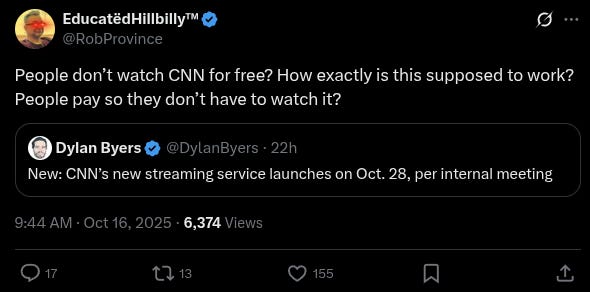 In a world where “cord-cutting” is the norm and free news aggregators dominate, CNN’s hubris reeks of deluded and insulated executives ignoring the reality that their toxic brand is more liability than asset.