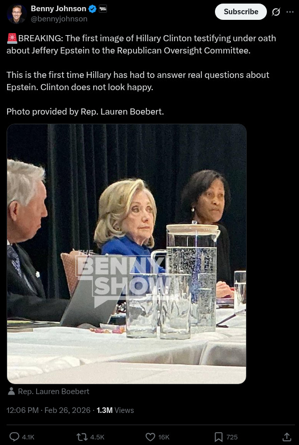 Watch Hillary Clinton’s full Epstein deposition here—including the explosive moment.
