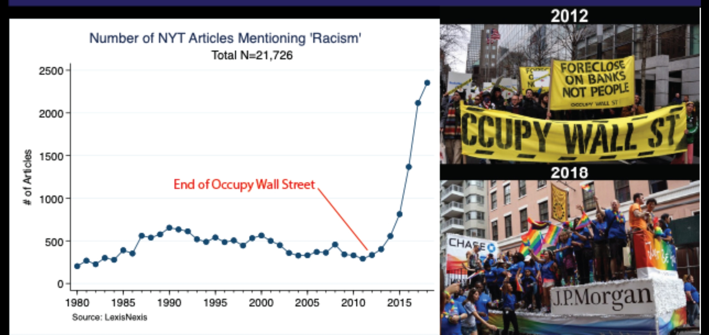 Under Obama, criticism morphed into “bigotry.” Occupy Wall Street threatened corporate interests so we had to start hating our neighbors instead.