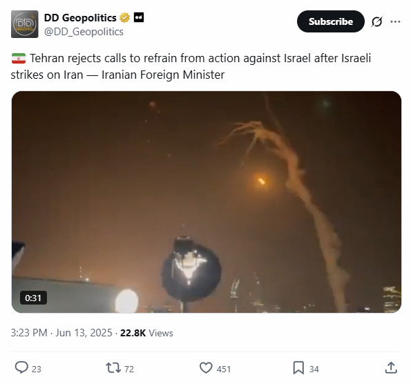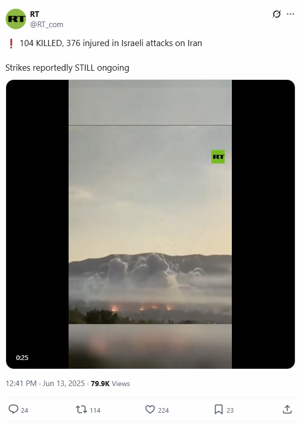 Update(1330ET): There are reports that Israeli strikes on Iran have continued through Friday, with the WSJ reporting that up to two weeks of attacks could be coming.