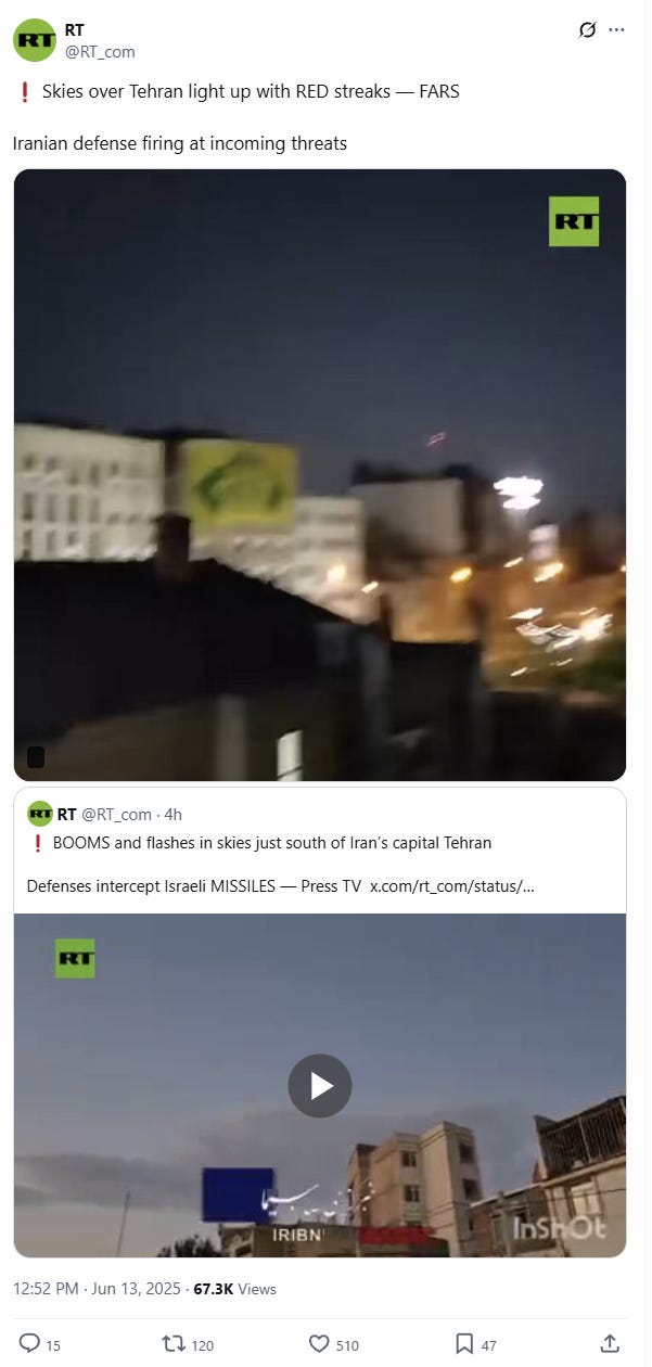 Israel is bracing for potential big counterattack, and yet clearly Iran is struggling to even get its air defenses active in thwarting the Israeli airstrikes. Still, air defenses appear very active over the capital on Friday.