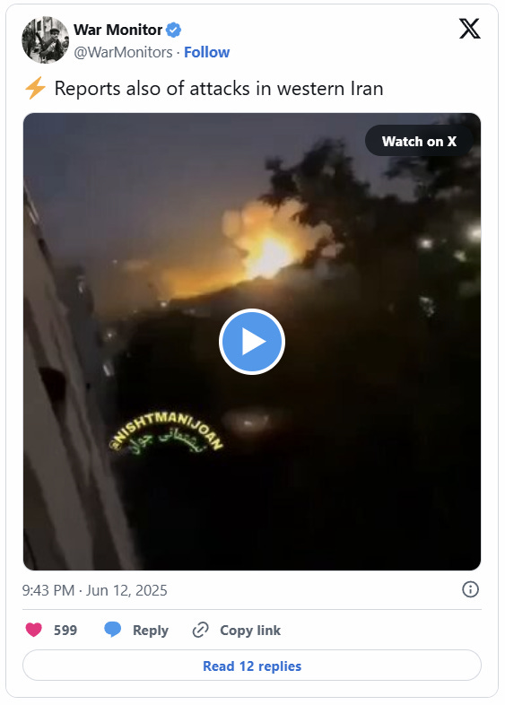 Update2330ET: It appears there were at least two waves of Israeli attacks, with smoke still seen over Iranian military sites and areas of Tehran in the daylight morning hours.