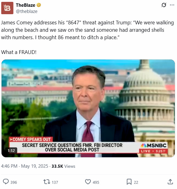 James Comey Peddles UNBELIEVABLE Excuse for His ‘8647’ Sea Shell Post