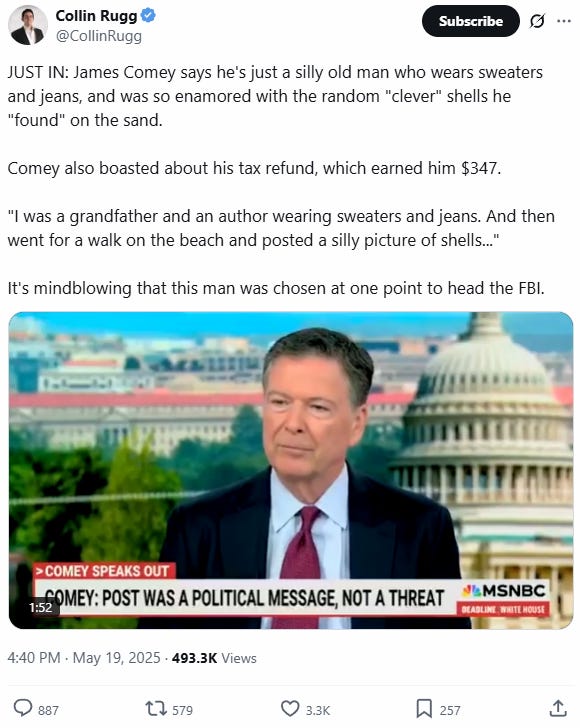 Comey then claimed that he wasn’t the one who arranged the shells, and they were put there by some other TDS addled leftist.