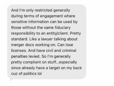 James also posted alleged text messages Tyrmand sent out to journalists.