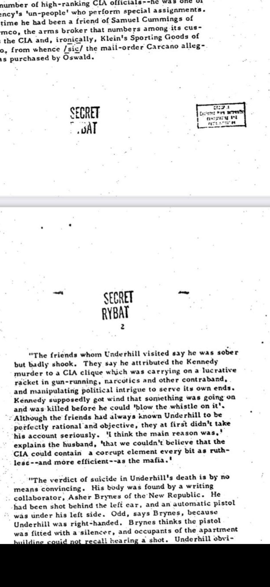“Underhill obviously had been dead several days. Garry Underhill’s chilling story is hardly implausible. As a spy apparatus the CIA is honeycombed with self-contained cliques operating without any real central control,” the file states.