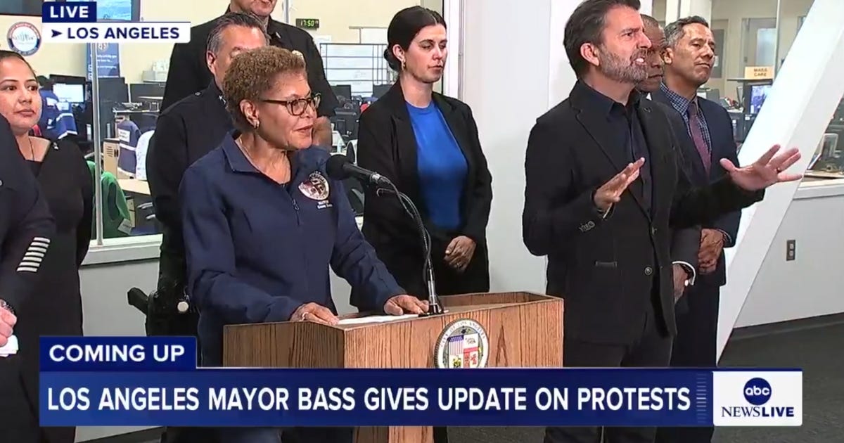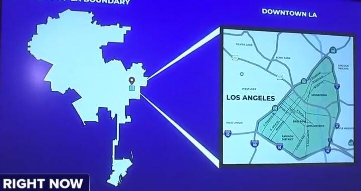 But before anyone gets ideas that this was a sincere gesture meant to protect the lives of innocent civilians, keep in mind that the mayor explicitly wanted to highlight just how contained the curfew zone will be. It will apply to the area of downtown from the 5 Freeway to the 110 Freeway and from the 10 Freeway to where the 110 Freeway and the 5 Freeway merge, Bass said. In other words, see - the rest of LA is perfectly safe. Well, we'll see.