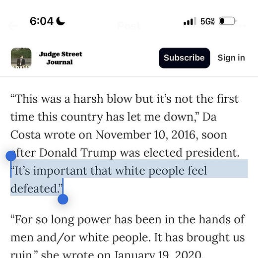 DaCosta has issued too many disparaging remarks about whites to include here, as the Judge Street Journal captured in pages of screenshots.