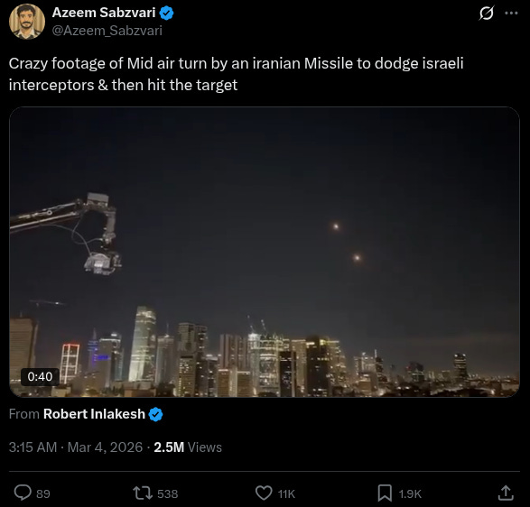 Crucially, in Washington the US Senate blocked an effort to curb President Trump’s Operation Epic Fury, voting 53–47 against a procedural motion aimed at limiting the operation. Meanwhile Iran is going increasingly ‘gloves off’ in its response, with Tehran officials saying the war is expanding beyond just direct airstrikes. All the while, President Trump is still seeking ‘quick victory’ - the NY Times says Thursday. It writes, “his calculation has been that he can launch military operations with the loss of few American lives and minimal disruption to the economy. The opening days of the war in Iran are challenging that assumption.” The report continues: