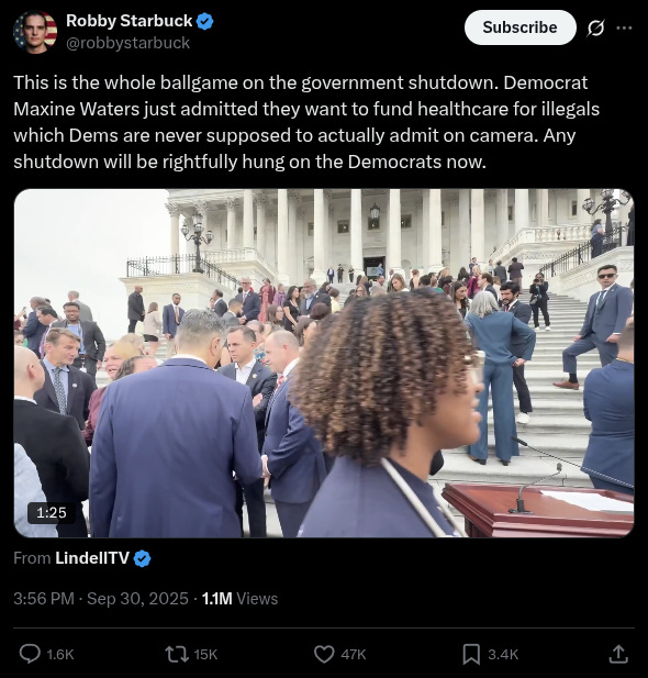 A reporter from RealLindelTV caught up with Rep. Maxine Waters on the steps of the Capitol and asked her if Democrats are shutting down the government because they want to give healthcare to illegal immigrants. Things started out ok, but went downhill quickly.