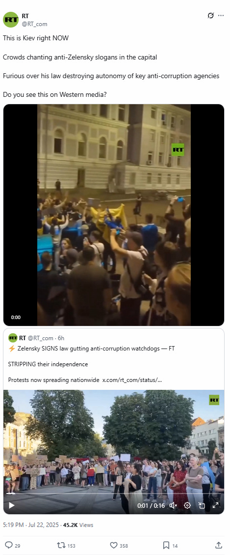 It is not clear at this point if Western countries are behind the anti-Zelensky protests but Zelensky is wearing himself out with several Western leaders.