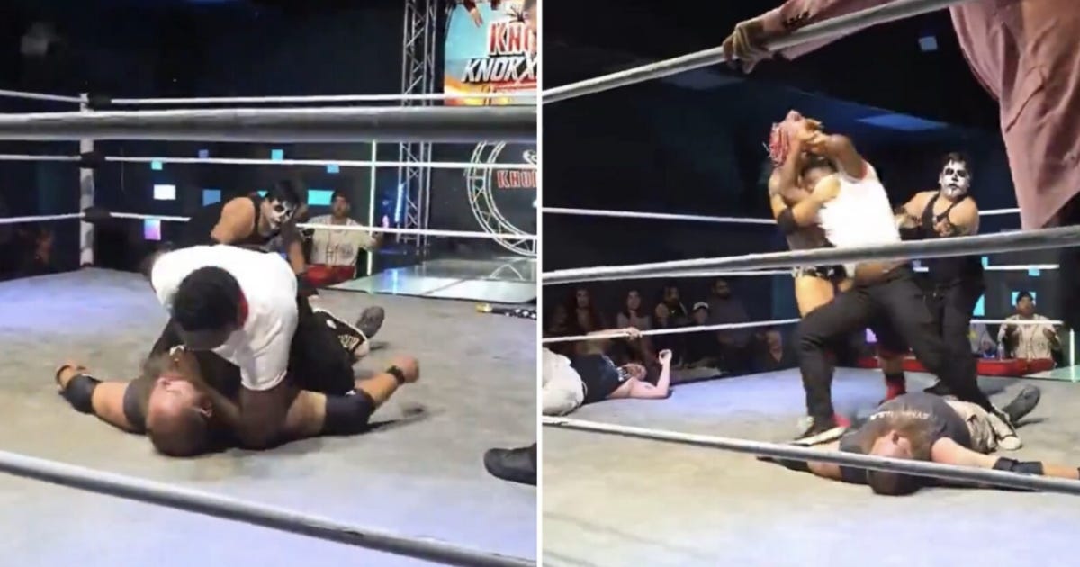 The shocking scene unfolded during a Knokx Pro Wrestling show and was broadcast on the streaming platform Kick.