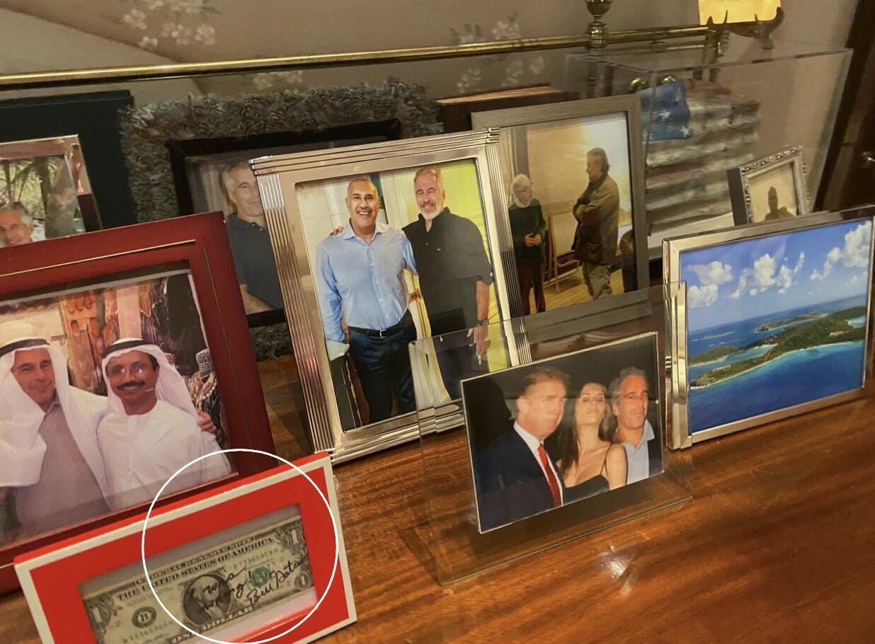 However, the most eyebrow-raising photo is a $1 bill bearing a handwritten note from Microsoft co-founder Bill Gates.