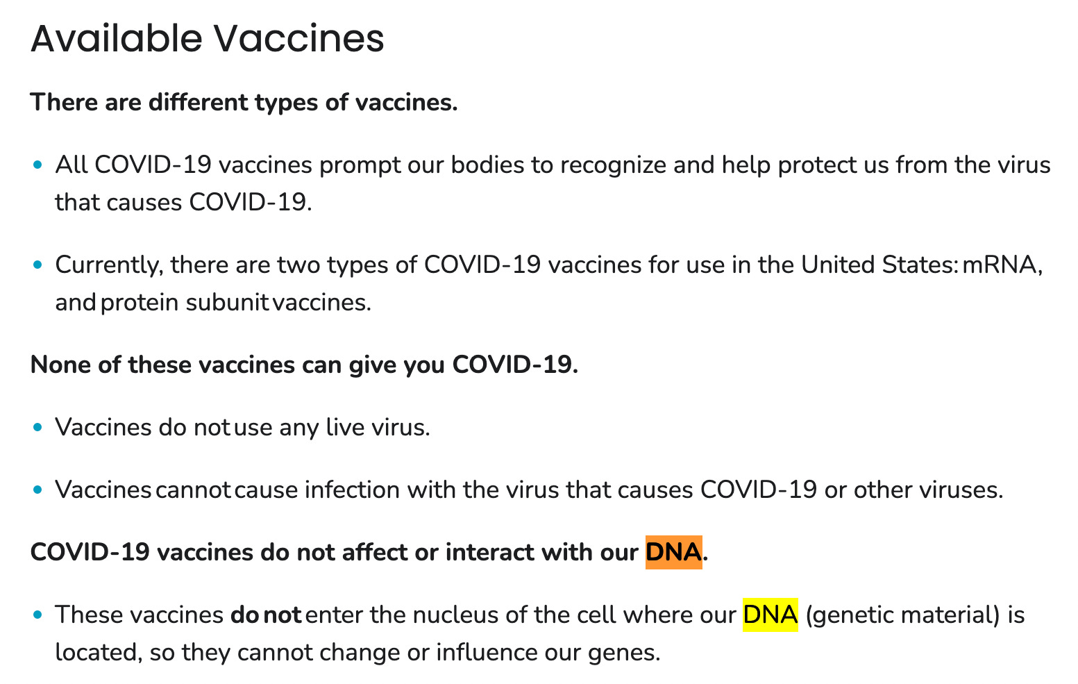 The second statement is categorically false and you know how I know that? Because they have no scientific evidence to make this claim, and in light of the fact that multiple studies from multiple labs (reproduced finding from non-conflicted labs) have identified DNA in the Pfizer and Moderna vials, it is a false statement.