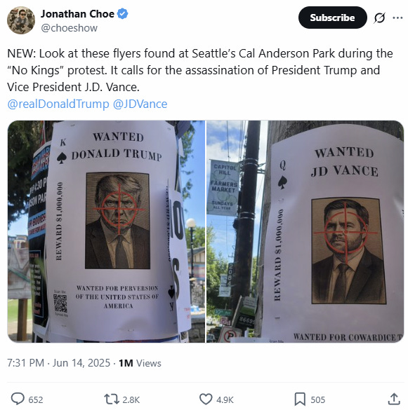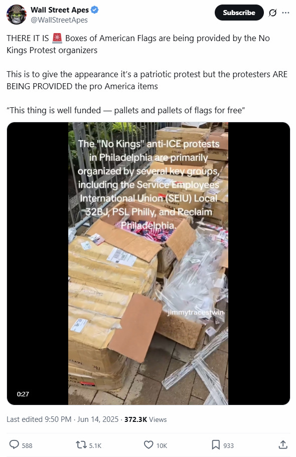 Our preliminary assessment of the command and control structures supporting the 'No Kings' color revolution operation by the Democratic Party has been propped up through dark money networks that continue to finance radical left-wing NGOs engaged in what appears to be a sustained, low-grade color revolution during the day and riots at night. These NGOs, operating with logistical sophistication, have aimed to undermine societal cohesion and erode public trust in the Trump administration.