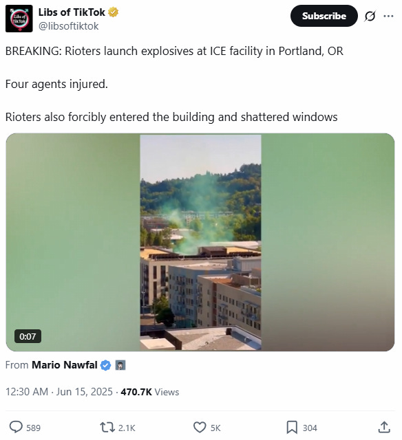 As the evening unfolded and the retirement homes called back their revolutionary Boomer protesters for dinner, medication, and the nightly MSNBC shows, isolated urban unrest began to materialize in several cities. Notably, Portland and Los Angeles saw leftist groups with younger foot soldiers on the streets escalate from protest to riot in a short fashion.