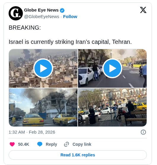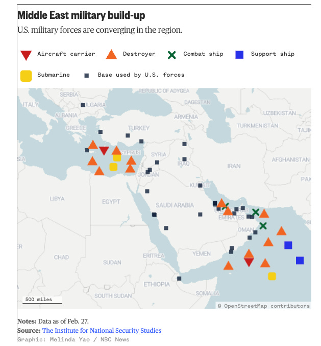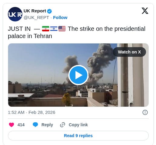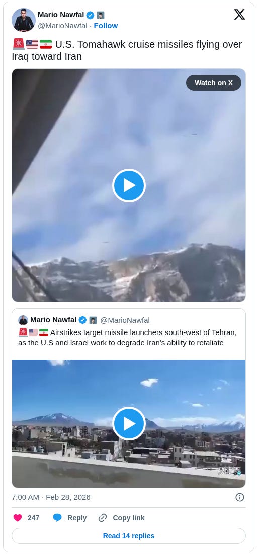 Operation Epic Fury comes amid the U.S. building a massive military presence in the region (read report). Also, one day after indirect nuclear talks (read here) between the U.S. and Iran did not end so well, according to Trump.