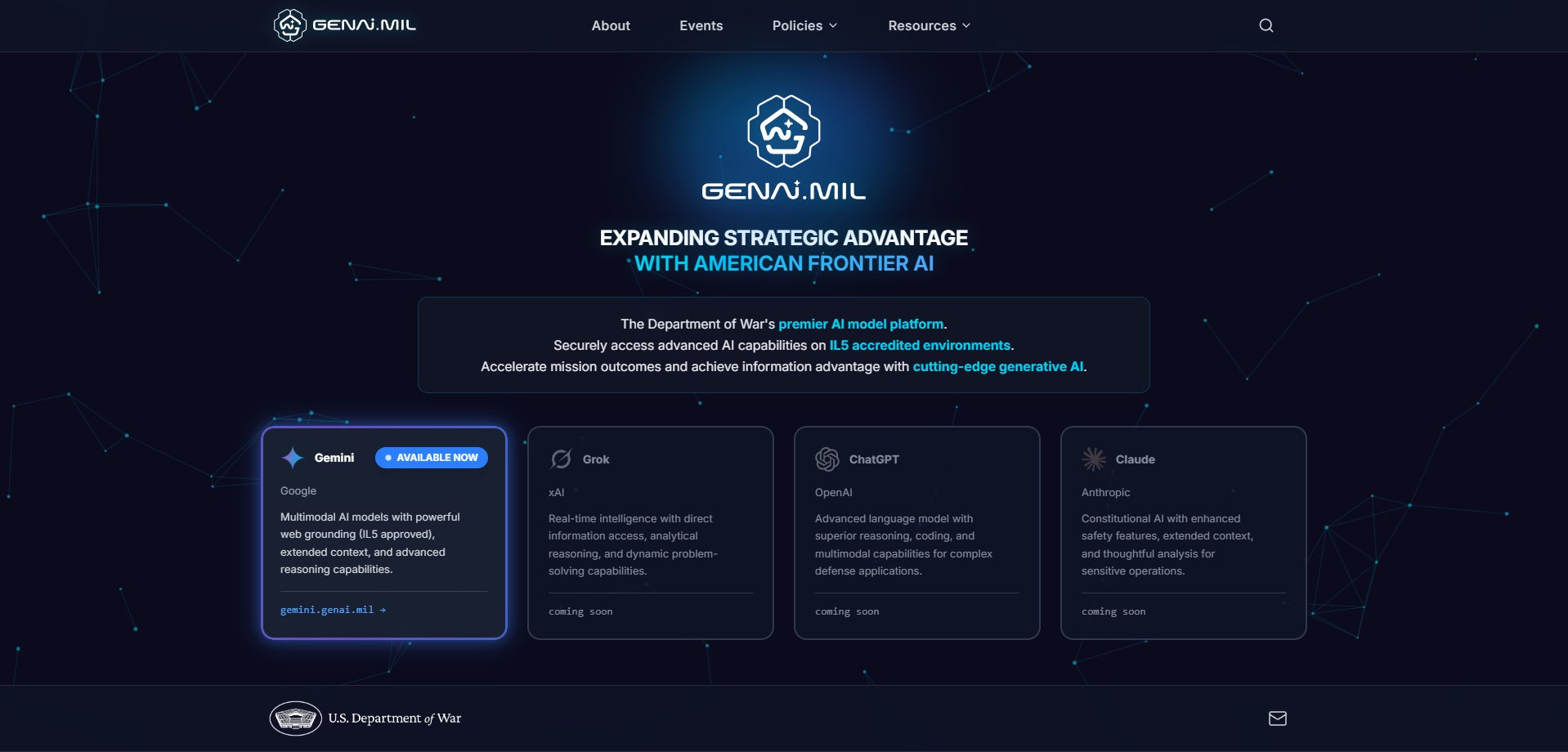 The War Department said in a press release that the Google Gemini program, dubbed Government Gemini, “empowers intelligent agentic workflows, unleashes experimentation, and ushers in an AI-driven culture change that will dominate the digital battlefield for years to come.”