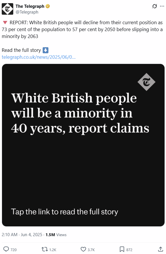 While research has indicated that the UK is on course to become a minority white country within decades, Betz predicts that it won’t actually happen because enough native Britons may move to reverse the trend.