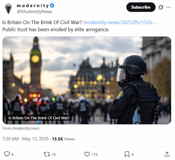 Your support is crucial in helping us defeat mass censorship. Please consider donating via Locals or check out our unique merch. Follow us on X @ModernityNews.