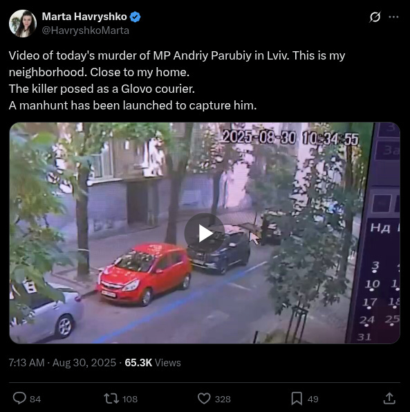 Former Ukrainian parliamentary speaker Andriy Parubiy - a prominent voice on the hardline Ukrainian right - was shot and killed in the western city of Lviv on Saturday, grabbing headlines in Ukraine and internationally, and resulting in an urgent manhunt for the assailant. He had been walking casually near his home on a sidewalk when he was executed in the street.