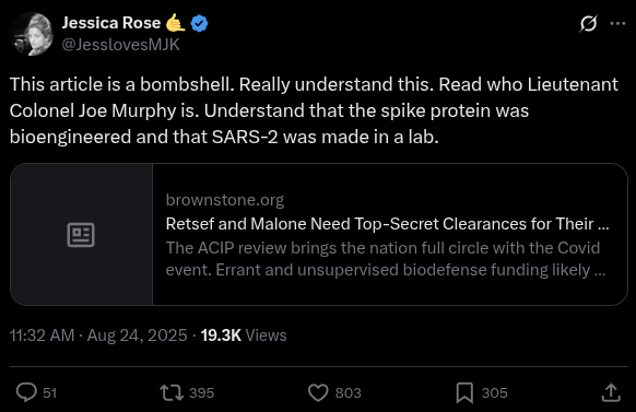 The same-day news that ACIP will investigate the Covid vaccines, paired with Emily Kopp’s expanded report on the cover-up of Covid origin intelligence, parallels the true linkage between origins and the vaccine issue. The drip-drip of origin leaks previously revealed the suppression of intelligence community analysis of SARS-CoV-2 and its origins. Ms. Kopp’s exposé revisits further aspects of the cover-up. This matters because American analysts actually did analyze origins, the SARS-CoV-2 genome, and the spike protein, despite every effort of the biodefense oligarchy to suppress them from doing so.