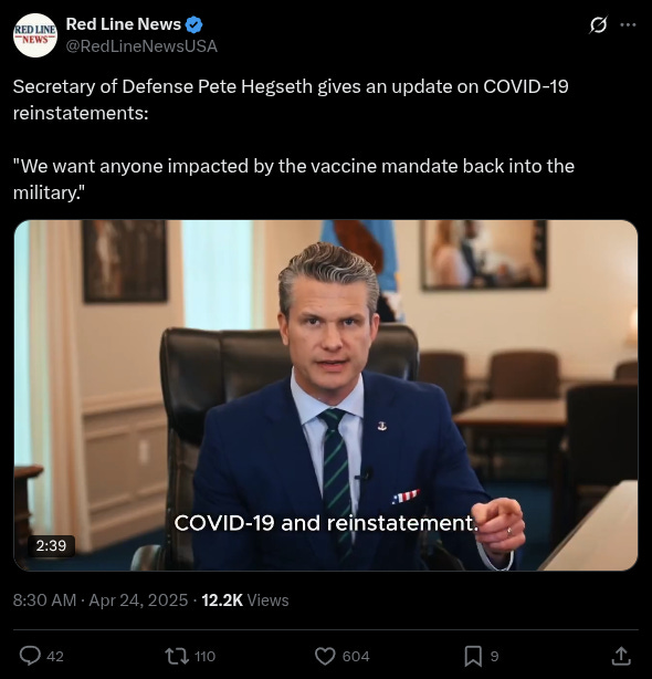 Secretary of War Pete Hegseth has made a priority of reinstating personnel kicked out over the military’s vaccine mandate.