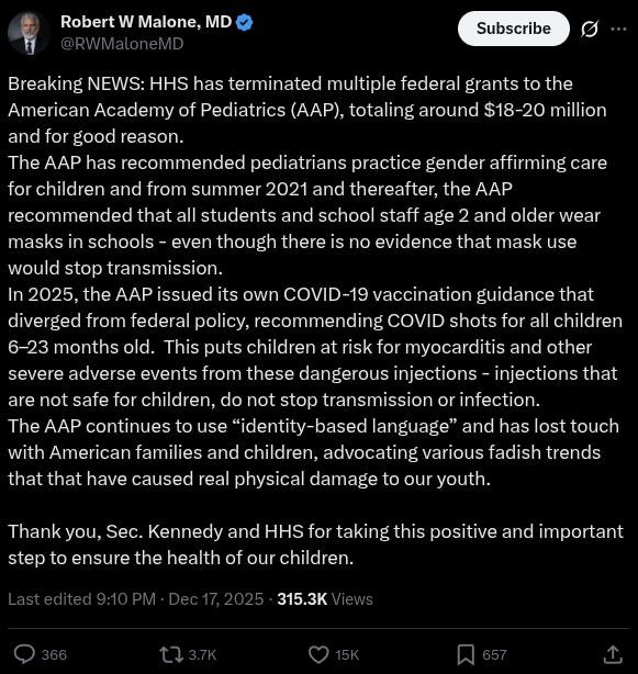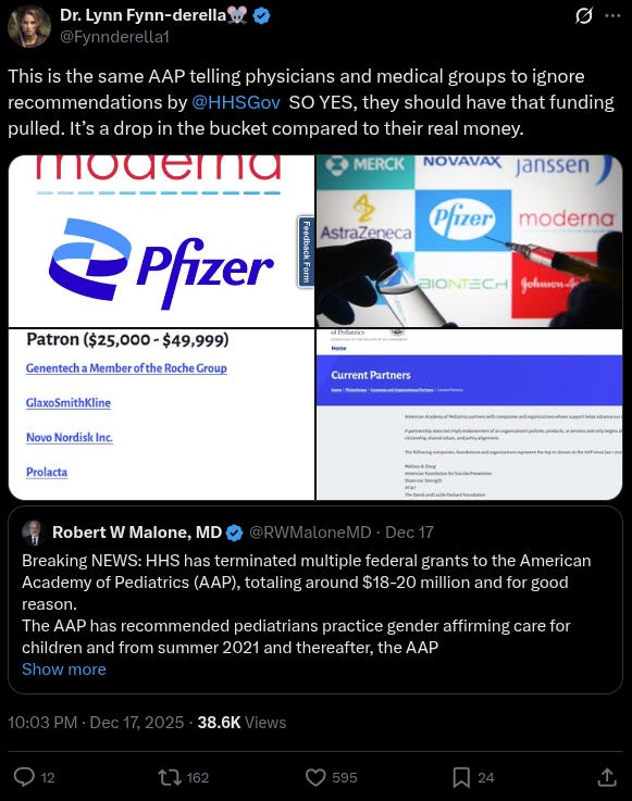 Any group of physicians that advocates for covid vax for infants and eliminating religious exemptions is not fit for purpose. Throw in the funding from Big Pharma, and the AAP is clearly corrupted.