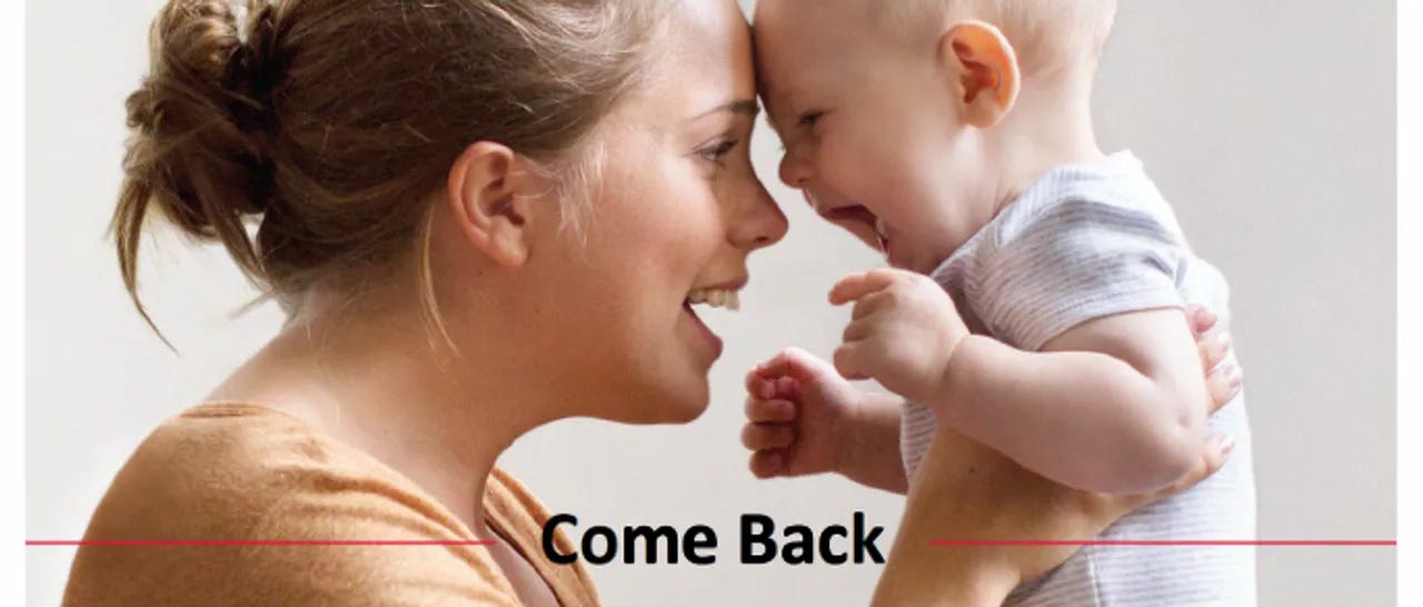 “Come back,” one marketing slide reads, showing a picture of a mother and baby.