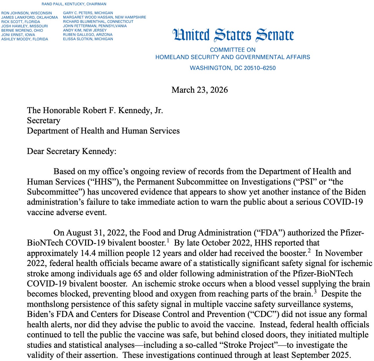A new Senate investigation led by Sen. Ron Johnson has uncovered that Biden administration health officials identified a statistically significant ischemic stroke risk tied to the Pfizer COVID-19 booster as early as November 2022—then buried it while pushing continued uptake in the elderly.