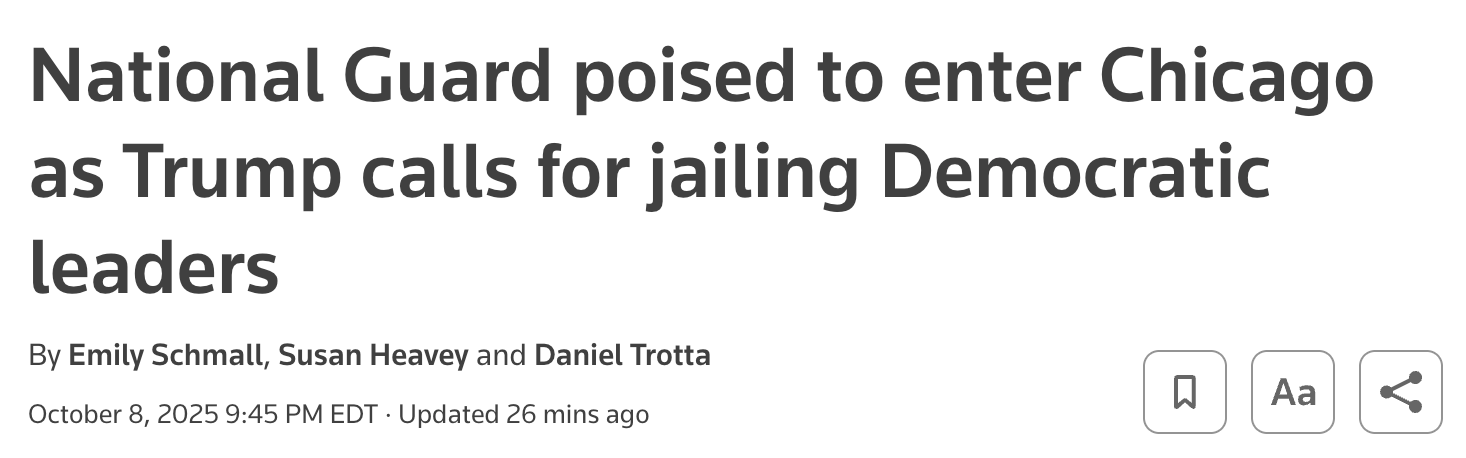 On Wednesday, Trump publicly declared that Pritzker and Johnson “should be in jail” for “failing to protect ICE officers” from violent protesters. As such, he ordered the deployment of approximately 500 National Guard troops to and around the greater Chicago area despite objections from state and city leaders.