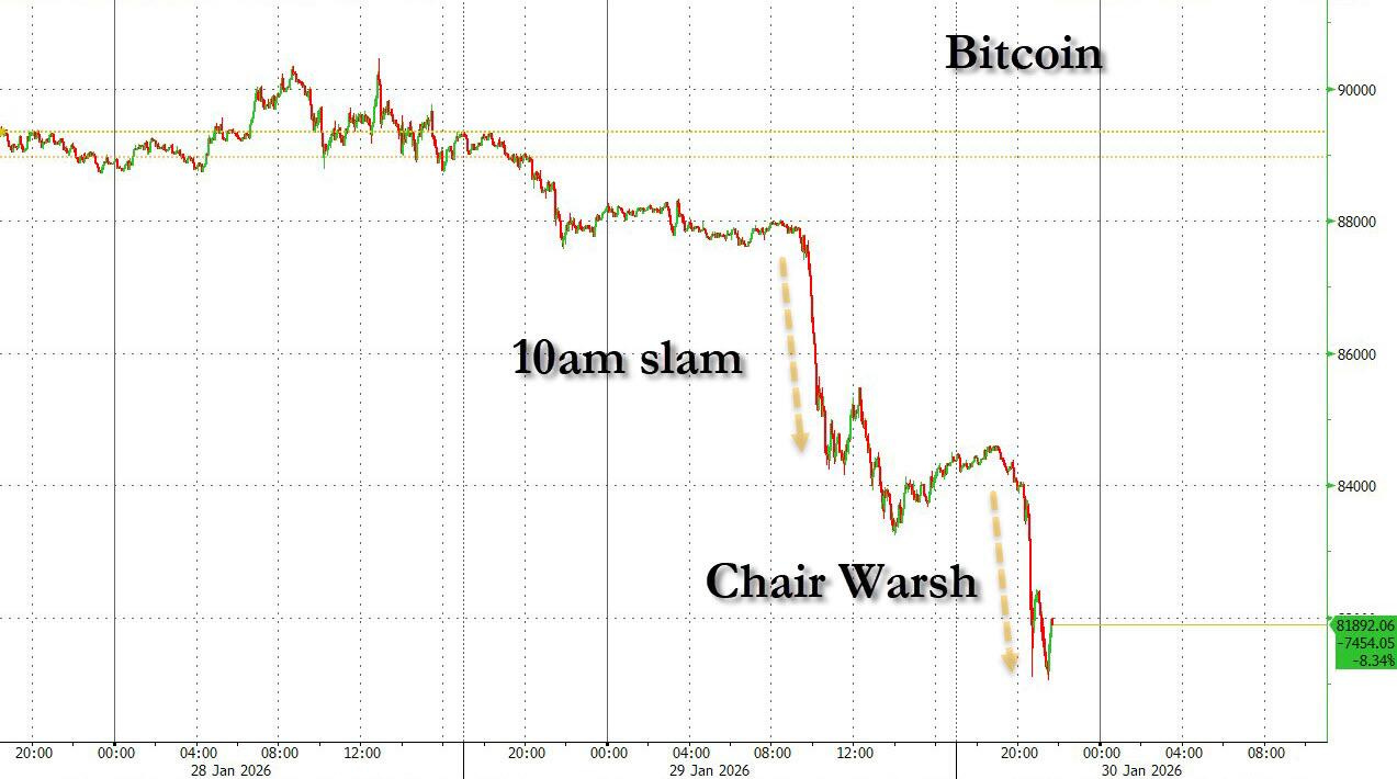 It wasn’t just bitcoin: futures also fell, the dollar and treasury yields pushed higher (i.e., making housing not more affordable), and gold crashed again, on bets Warsh - best known as one of the most hawkish former Fed officials, often arguing for tighter monetary policy and a smaller Fed balance sheet, and who changed his tune only recently in hopes to ingratiate himself with Trump