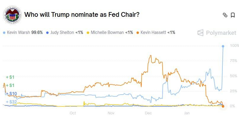 That’s when Warsh went from slight lead, to full-on favorite at Polymarket.