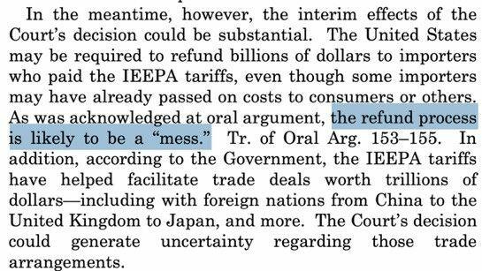 Justice Kavanaugh’s dissent notes that the process is likely to be a “mess,” warning that “the Court’s decision is likely to generate other serious practical consequences in the near term,” adding “One issue will be refunds.”