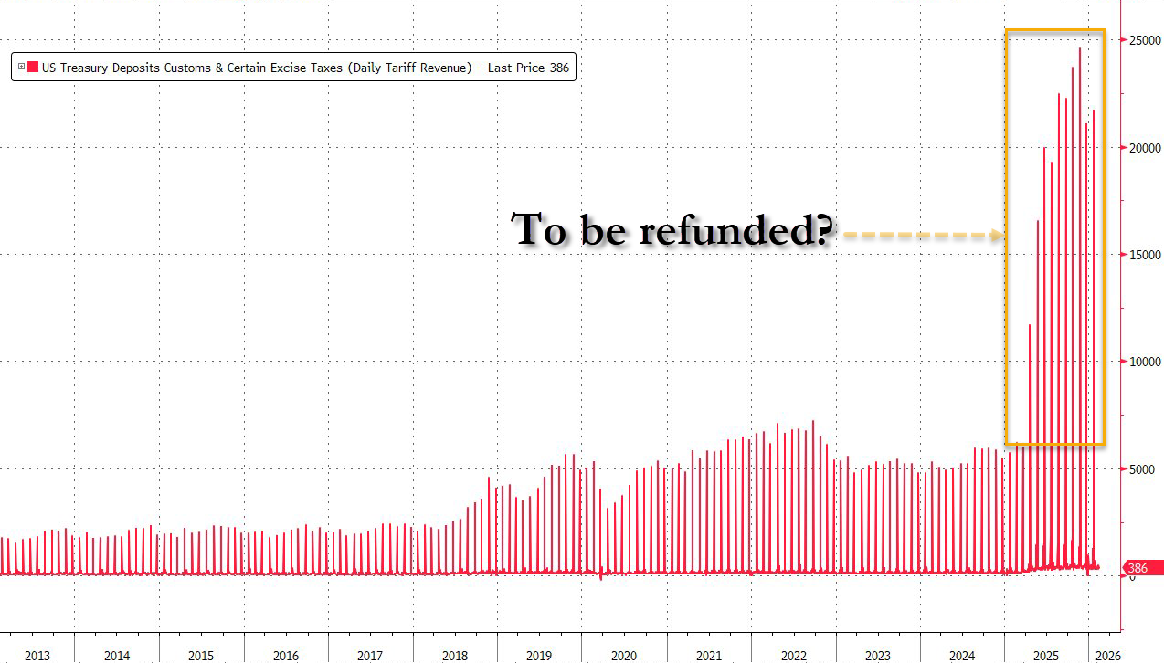 Trump’s administration has not provided tariffs collection data since December 14. But Penn-Wharton Budget Model economists estimated on Friday that the amount collected in Trump’s tariffs based on IEEPA stood at more than $175 billion. And that amount likely would need to be refunded with a Supreme Court ruling against the IEEPA-based tariffs. -Reuters