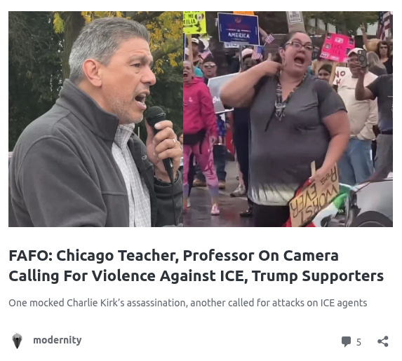 A Chicago teacher and a professor were also caught on camera calling for violence against ICE agents and Trump supporters, embodying the unhinged leftist rhetoric that has no place around impressionable kids.