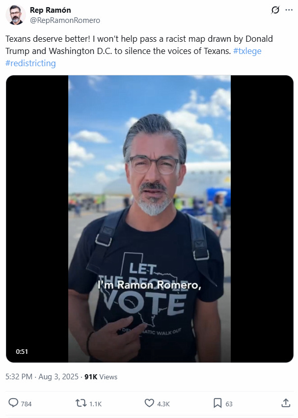 “This is not a decision we make lightly, but it is one we make with absolute moral clarity. Governor Abbott...is using an intentionally racist map to steal the voices of millions of Black and Latino Texans, all to execute a corrupt political deal. Apathy is complicity, and we will not be complicit in the silencing of hard-working communities who have spent decades fighting for the power that Trump wants to steal.”