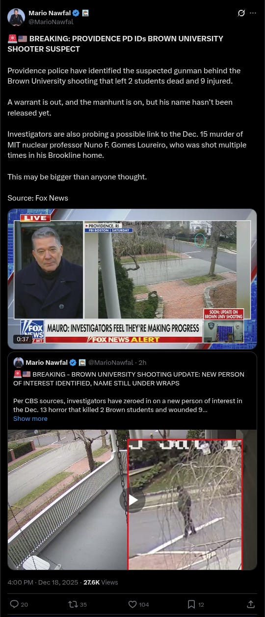 The Plot Thickens: First Brown University Shooting, Then MIT Professor Murder — Police Investigate Link