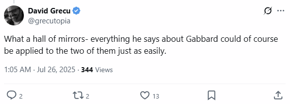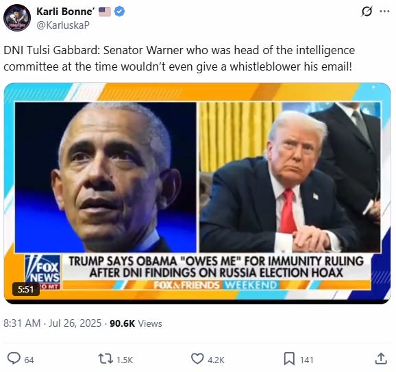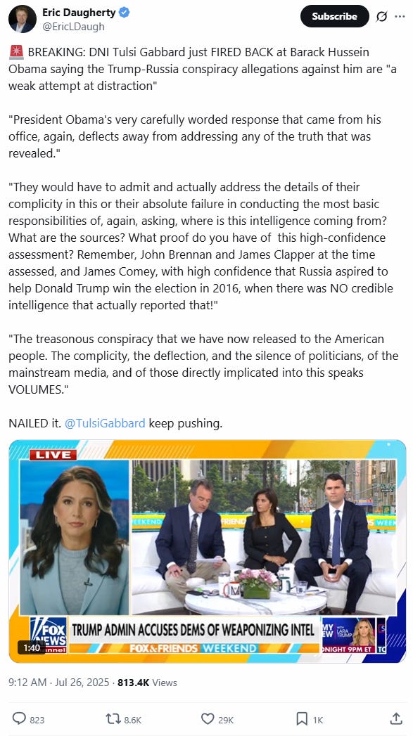 Gabbard responded Friday to Obama’s desperate attempt to distance himself from what she has described as a “treasonous conspiracy.”