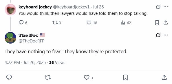 “The treasonous conspiracy that we have now released to the American people. The complicity, the deflection, and the silence of politicians, of the mainstream media, and of those directly implicated in this speak volumes,” Gabbard asserted.