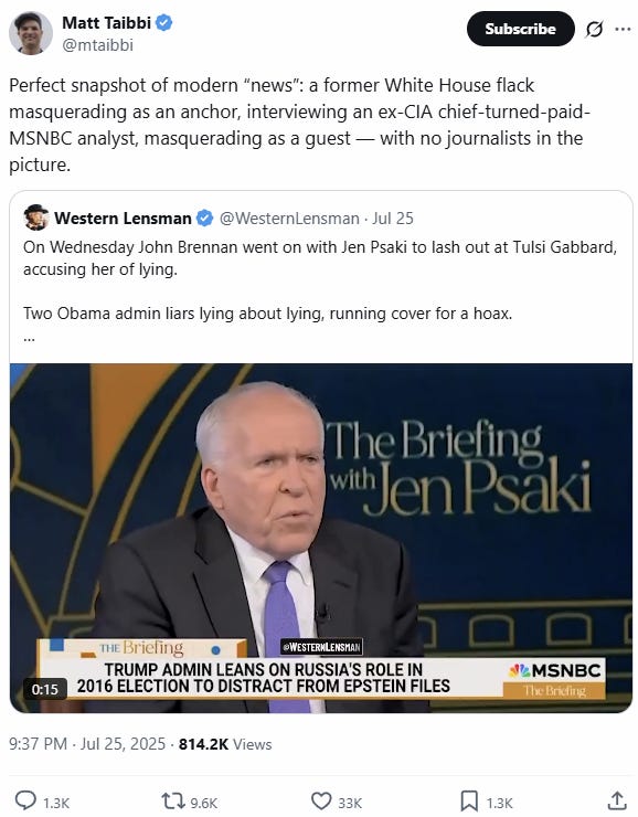 John Brennan, the Obama CIA Deep Stater currently up to his neck in the oversight majority staff report that details how he and others under Obama cooked up the entire Russia collusion hoax, appeared on MSNBC and provided a snapshot that perfectly encapsulates the legacy media.