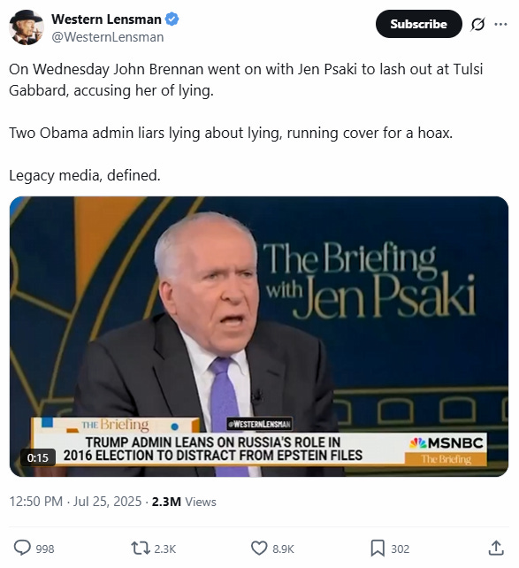 Brennan openly accused DNI Tulsi Gabbard of lying even though the documents are declassified for all to read.