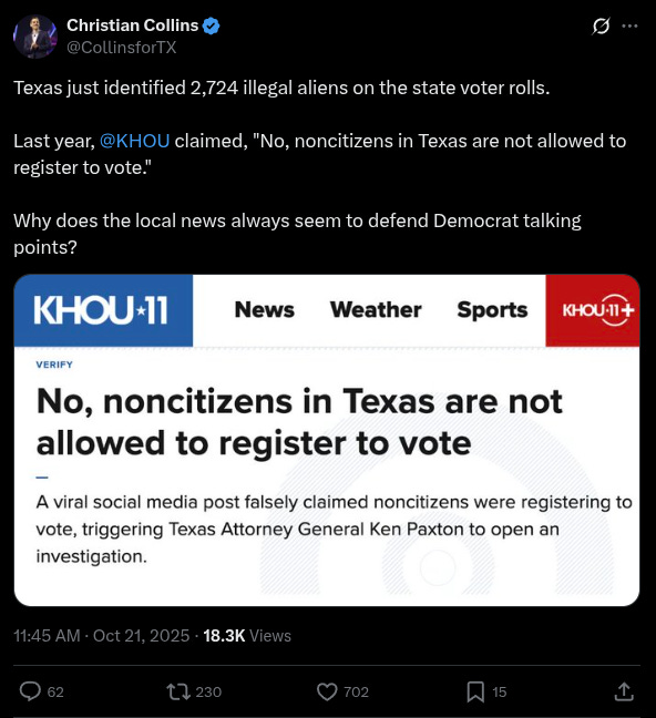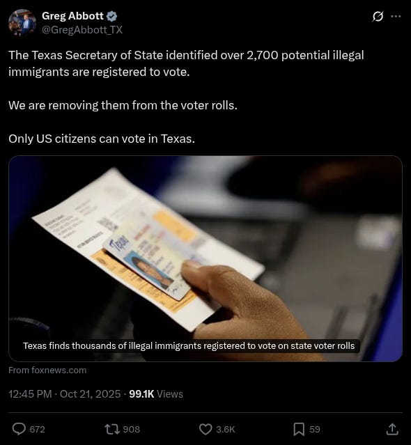 When your governor sends over $13 million of tax payer dollars to support Islamist causes, it’s time for a new governor. He puts on a good show against that and deporting illegals but it’s all bread & circuses with him. Illegals registered to vote doesn’t surprise me one bit!