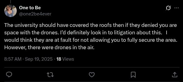 And more pointed out that other drones were present and flying around the campus on the day, prompting the question whose were they?