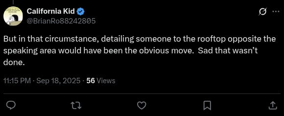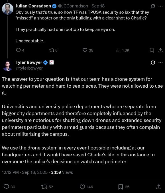 This prompted one respondent to ask “how TF was TPUSA security so lax that they “missed” a shooter on the only building with a clear shot to Charlie?”