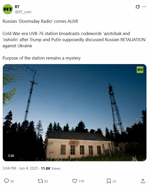 And we don't know what's going with this unusual post from RT, but it can't be good... Doomsday Radio?