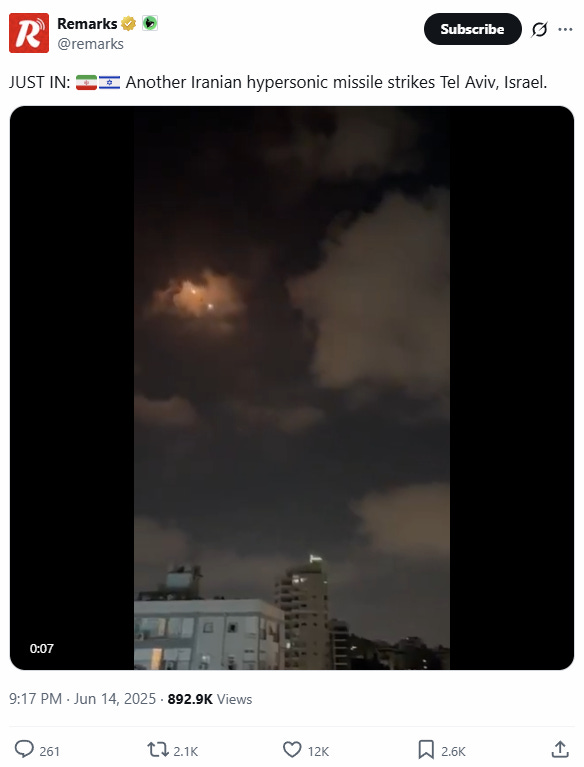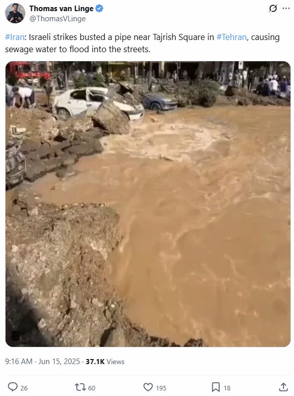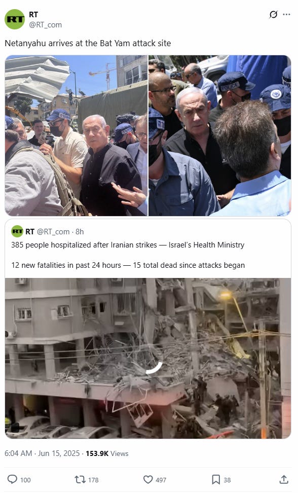 The danger is that both sides are clearly unleashing full firepower on civilian areas, and some reports say Iran is now targeting Netanyahu's own residential neighborhood with attacks.
