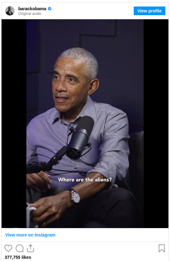 “Because President Obama was just on a podcast talking about how he believes in UFOs and hinting that he saw something when he was president.”